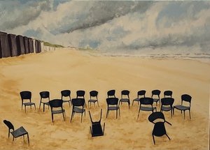 2022Strand Oranjezon, olieverf realistisch